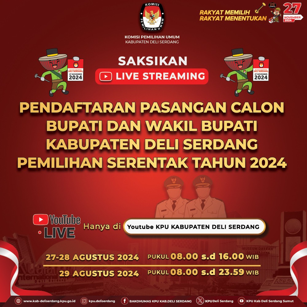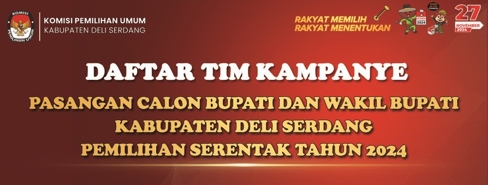 Berikut disampaikan Daftar Tim Kampanye Pasangan Nomor Urut 3 pada Pemilihan Bupati dan Wakil Bupati Deli Serdang Tahun 2024 (Klik di sini)