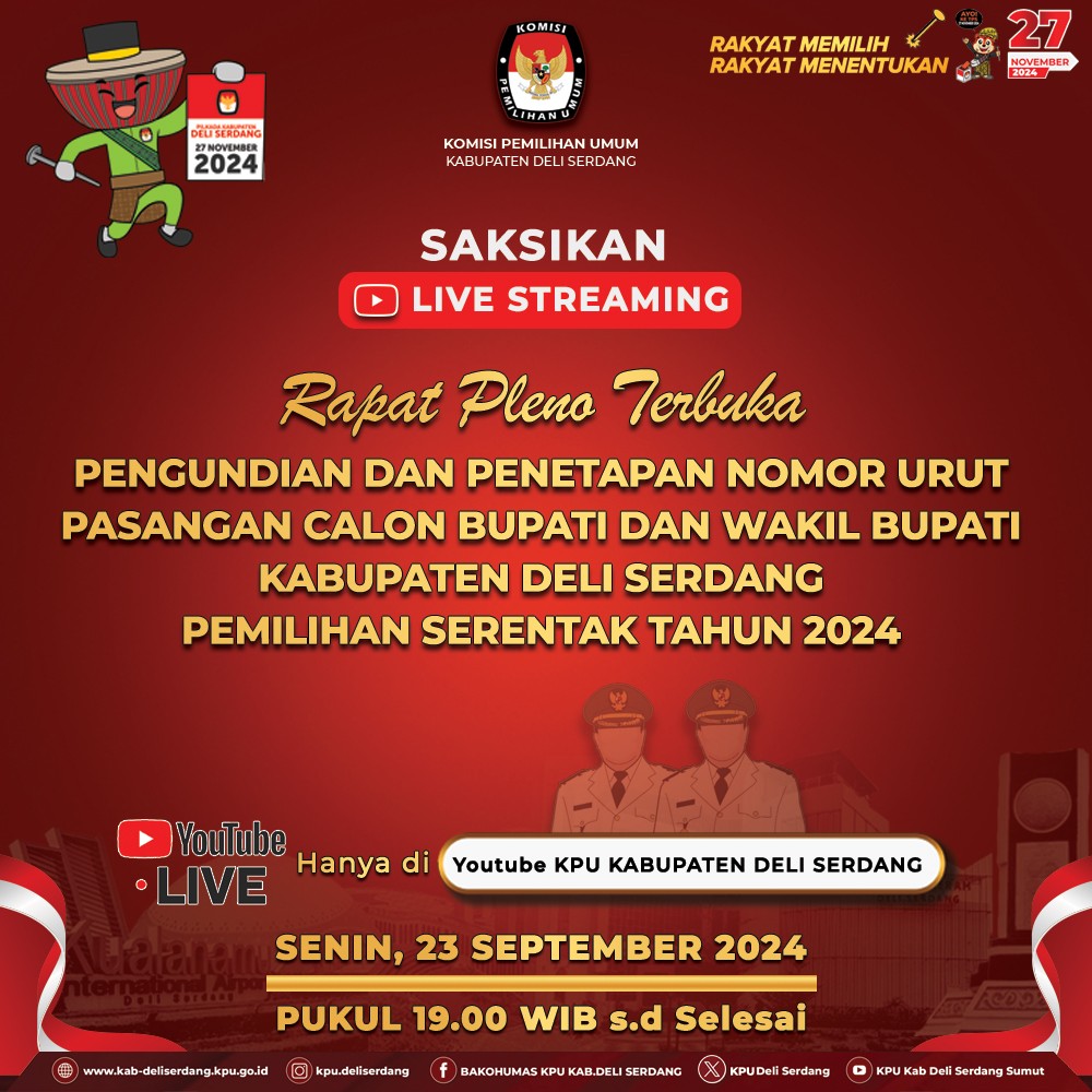 Live Streaming Rapat Pleno Terbuka Pengundian Dan Penetapan No Urut Paslon Bupati dan Wakil Bupati Deli Serdang Tahun 2024