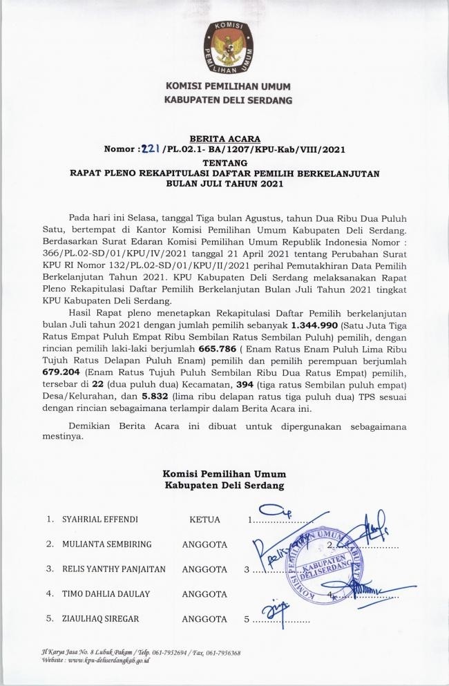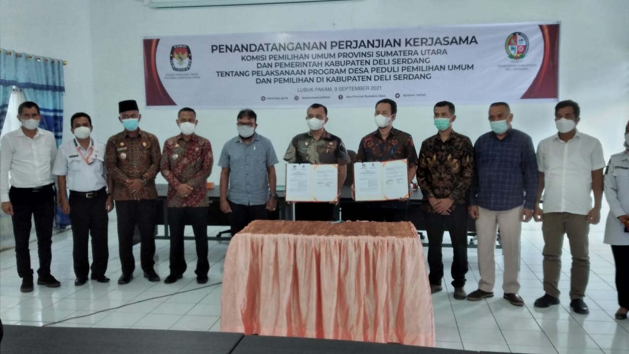 Kamis, 30-09-2021 | KPU Kabupaten Deli Serdang melaksanakan rapat koordinasi dengan KPU Provinsi Sumatera Utara pelaksaan Desa Peduli Pemilu dan Pemilihan yang akan dilaksanakan di Kabupaten Deli Serdang. Pelaksanaan Program Desa Peduli Pemilu dan Pemilihan ditetapkan melalui Komisi Pemilihan Umum Republik Indonesia Nomor : 290/PP.06-Kpt/06/KPU/IV/2021. Program kerja ini merupakan salah satu bentuk pendidikan pemilih, sebagaimana di jelaskan dalam Lampiran Keputusan KPU Nomor : 290/PP.06-Kpt/06/KPU/IV/2021, Pendidikan pemilih Pemilihan Umum (Pemilu) dan Pemilihan Gubernur dan Wakil Gubernur, Bupati dan Wakil Bupati, dan/atau Wali Kota dan Wakil Wali Kota (Pemilihan) merupakan elemen penting dalam demokrasi, karena akan melahirkan pemilih yang mandiri dan rasional dimana hal ini merupakan ukuran kualitas demokrasi di suatu Negara. Lebih lanjut dalam Lampiran I Keputusan KPU Nomor : 290/PP.06-Kpt/06/KPU/IV/2021 disebutkan bahwa endidikan pemilih juga ditujukan untuk meningkatkan pengetahuan dan kepedulian masyarakat tentang kepemiluan. Sikap peduli Pemilu dan Pemilihan diharapkan menumbuhkan pengetahuan, pemahaman dan keterampilan masyarakat tentang Pemilu dan Pemilihan dalam rangka memperkuat basis penerimaan, dukungan, partisipasi dan kepercayaan masyarakat terhadap mekanisme Pemilu sebagai instrumen utama sistem politik demokrasi. Kepedulian masyarakat sebagai warga negara dalam konteks Pemilu dan Pemilihan akan menggiring mereka untuk aktif. Keaktifan tersebut tidak hanya sekedar berpartisipasi pada saat pemungutan suara, tetapi juga aktif pada seluruh tahapan Pemilu dan Pemilihan diberbagai level. Keaktifan ini akan membentuk sebuah tiang penyangga yang kuat dalam kesuksesan pemilu dan lebih jauh lagi terhadap penguatan demokrasi maupun pembangunan daerah. Pentingnya mendorong partisipasi aktif masyarakat dalam Pemilu maupun Pemilihan menjadi latar belakang pembentukan Desa Peduli Pemilu dan Pemilihan. Dimana, desa merupakan tingkatan sosial warga dari yang paling kecil. Apabila tingkatan sosial kecil ini sudah mampu mandiri dan rasional (melek) dalam konteks politik, diharapkan akan memberikan dampak bagi tingkatan sosial yang lebih besar. Sehingga partisipasi masyarakat yang lebih luas dalam hal Pemilu dan Pemilihan secara mandiri dan rasional dapat dicapai. Suatu desa dikatakan peduli Pemilu dan Pemilihan bukan hanya diukur secara kuantitatif yaitu berdasarkan angka partisipasi pemilih pada Pemilu dan Pemilihan di berbagai level tetapi juga secara kualitatif. Terutama dalam membuat pilihan politik, masyarakat secara sadar mengedepankan kemandirian dan rasionalitasnya. Latar belakang digagaskan program Desa Peduli Pemilu dan Pemilihan, sebagaimana tertuang dalam Lampiran I Keputusan KPU Nomor : 290/PP.06-Kpt/06/KPU/IV/2021 tersebut menjadikan program ini sangat bernilai untuk memberikan sosialisasi, pendidikan pemilih, dan mendorong peran aktif masyarakat menyukseskan Pemilu dan Pemilihan yang akan datang. (http://kpud-malangkota.go.id/berita/mengenal-program-desa-peduli-pemilu-dan-pemilihan)