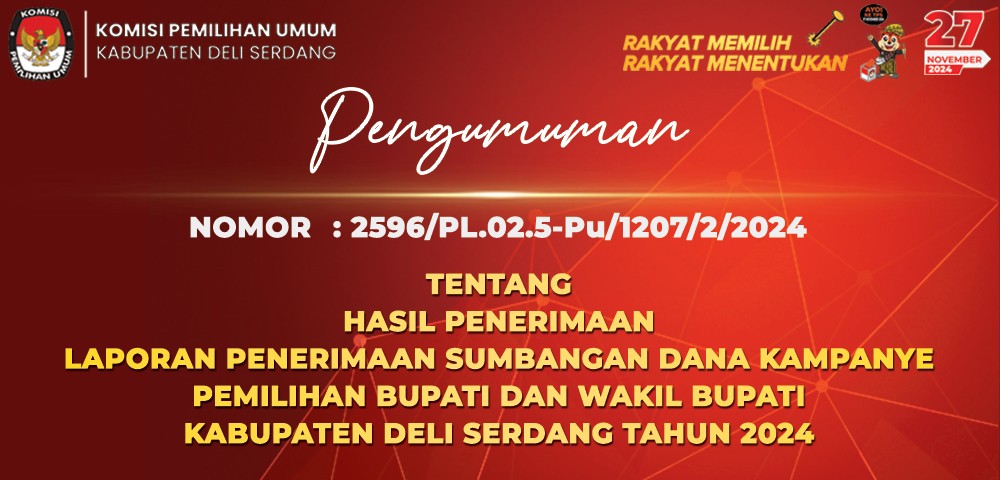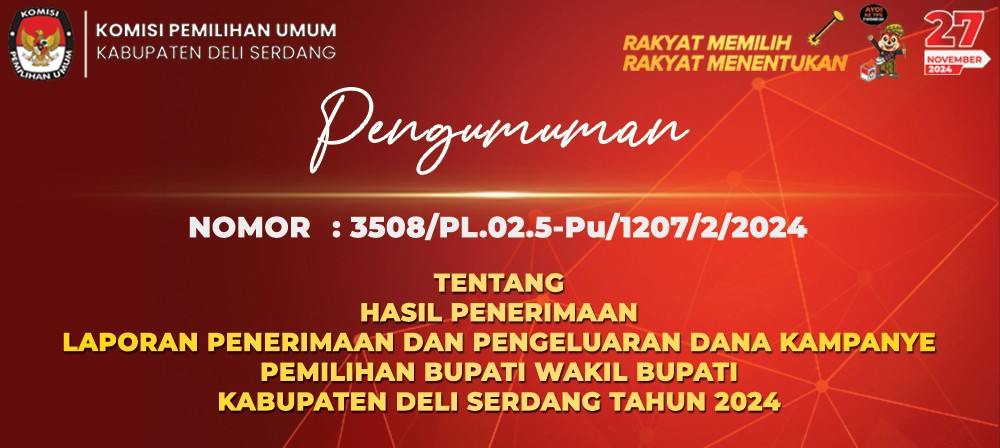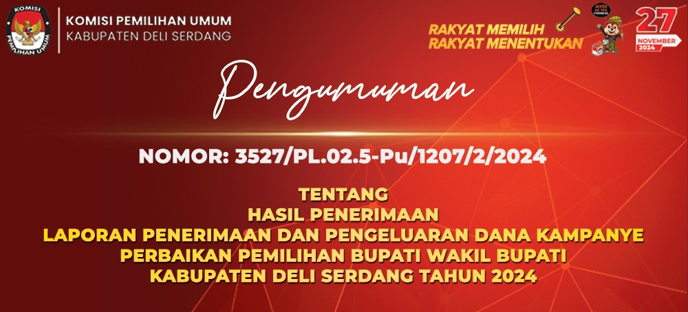 Tentang Hasil Penerimaan Laporan Penerimaan dan Pengeluaran Dana Kampanye Perbaikan Pemilihan Bupati dan Wakil Bupati Kabupaten Deli Serdang Tahun 2024