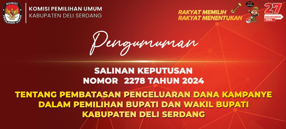 Salinan Keputusan Komisi Pemilihan Umum Kabupaten Deli Serdang Nomor 2249 Tahun 2024 Tentang Penetapan Nomor Urut Pasangan Calon Peserta Pemilihan Bupati dan Wakil Bupati Kabupaten Deli Serdang Tahun 2024 (KLIK DISINI!!!)