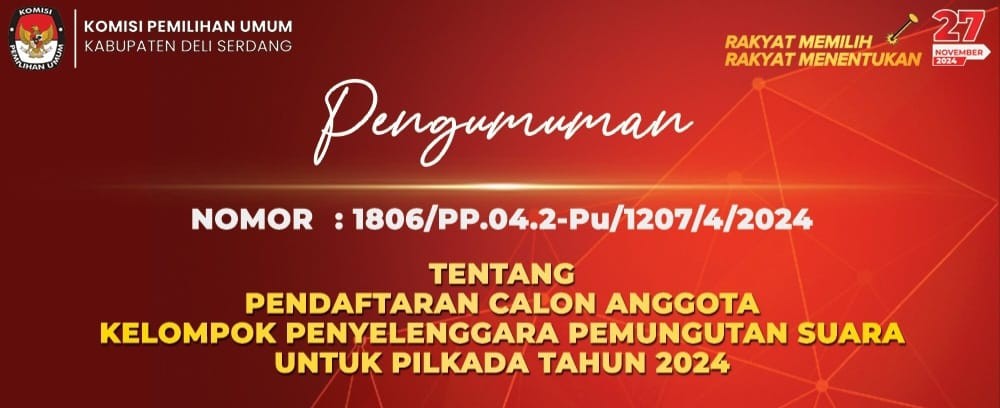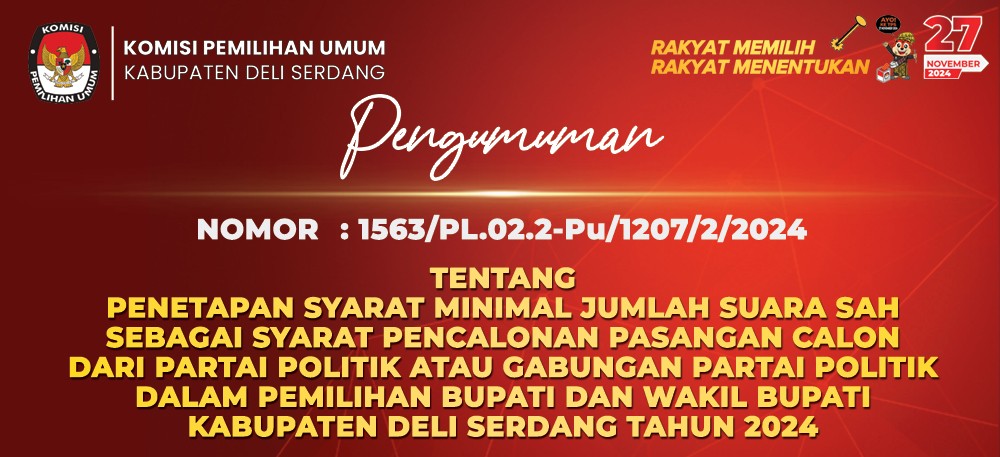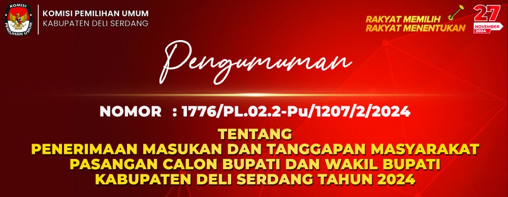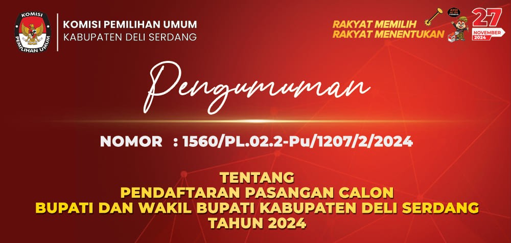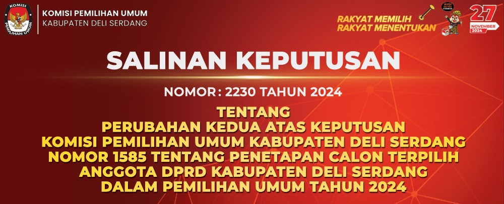 Tentang Perubahan Kedua Atas Keputusan Komisi Pemilihan Umum Kabupaten Deli Serdang Nomor 1585 Tentang Penetapan Calon Terpilih Anggota DPRD Kabupaten Deli Serdang Dalam Pemilihan Umum TAhun 2024 (KLIK DISINI!!!)