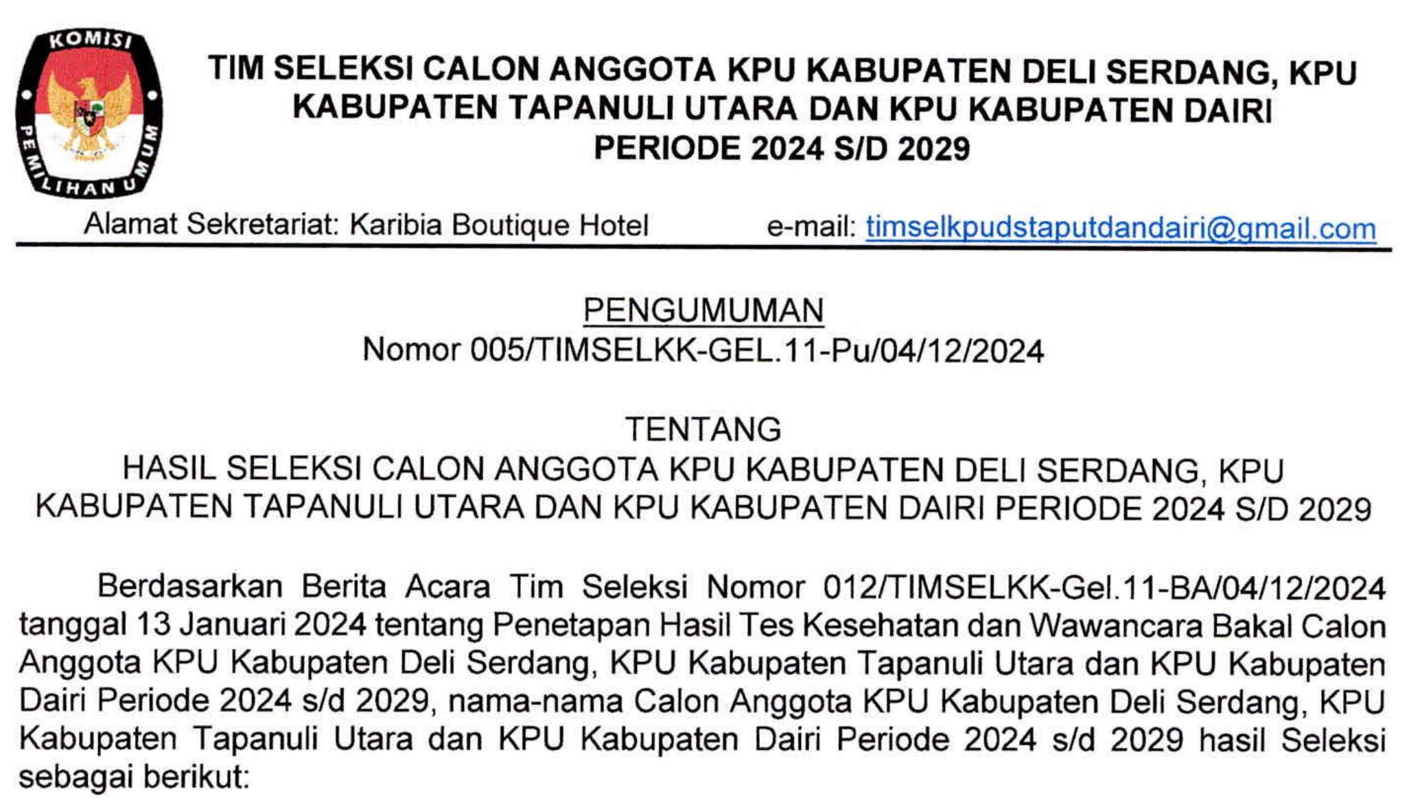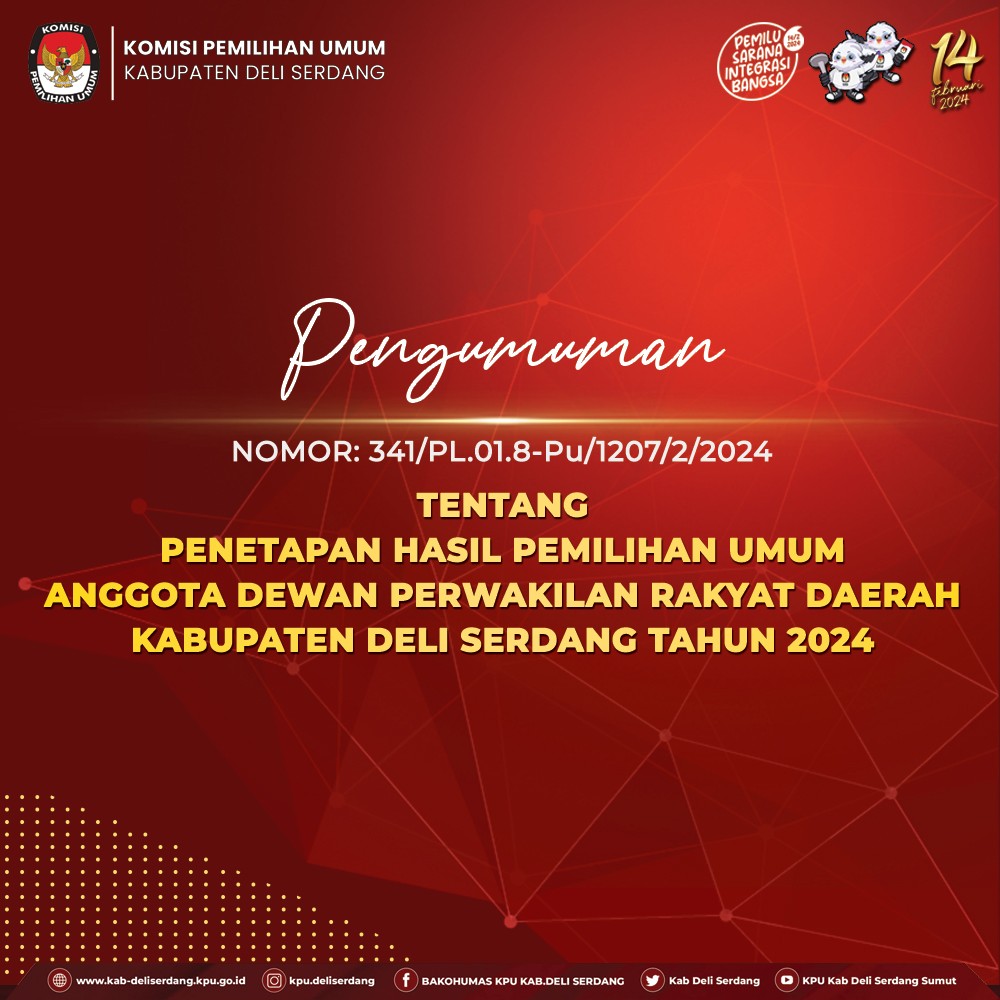 Pengumuman Tentang Penetapan Hasil Pemilihan Umum Anggota Dewan Perwakilan Rakyat Daerah Kabupaten Deli Serdang Tahun 2024 Selengkapnya KLIK DISINI !!!