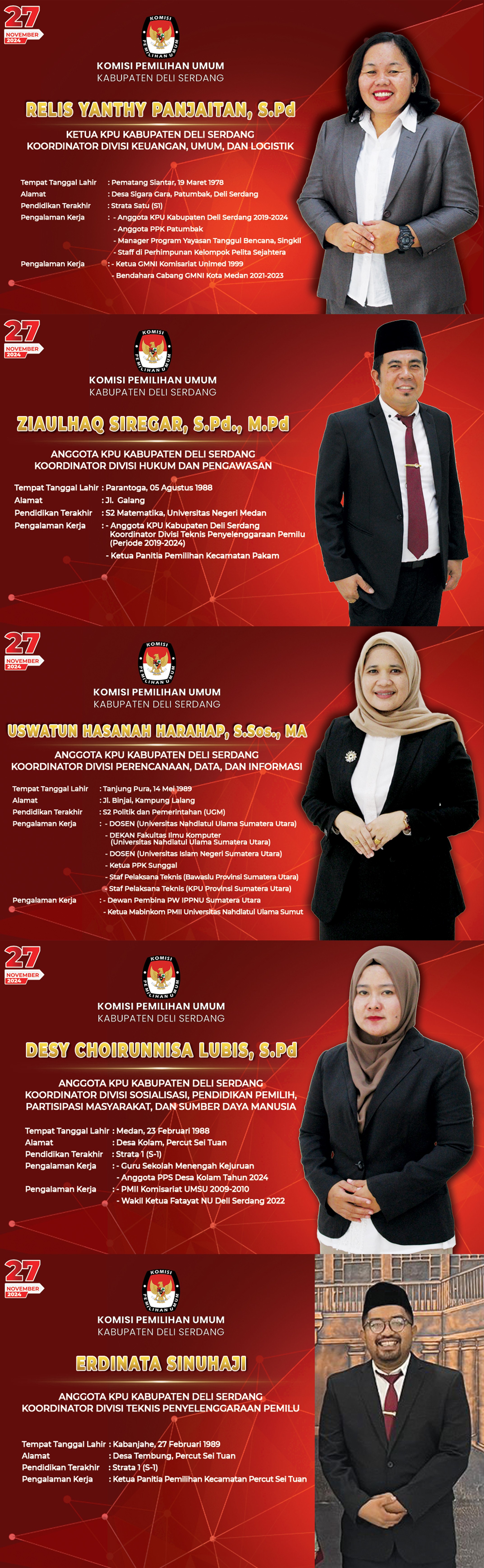 Profil Anggota KPU Kabupaten Deli Serdang